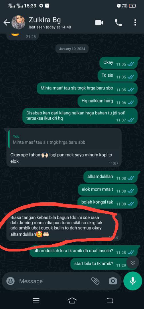 Zulkira ni bagitahu mak dah boleh stop ubat dan insulin tau
